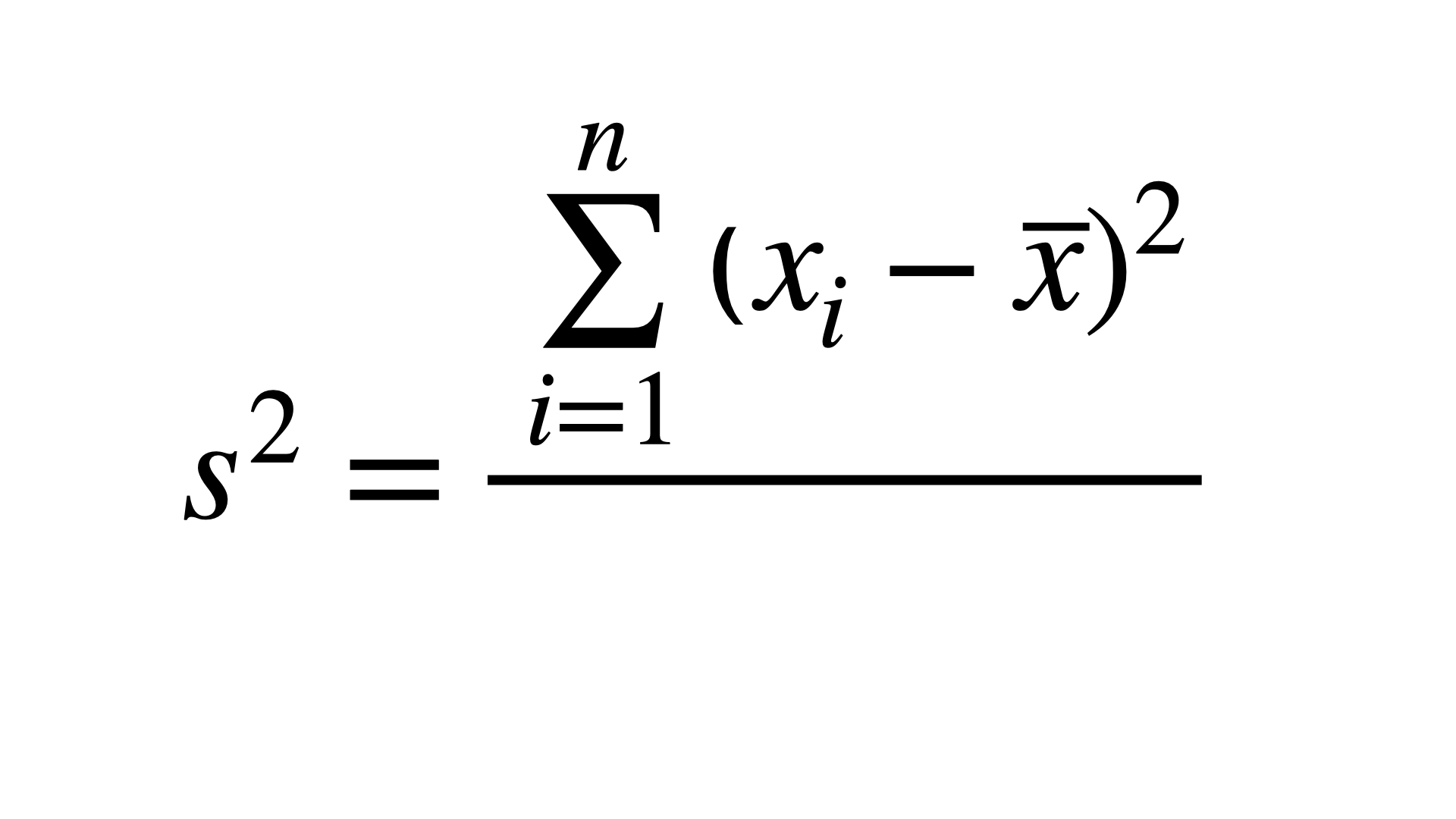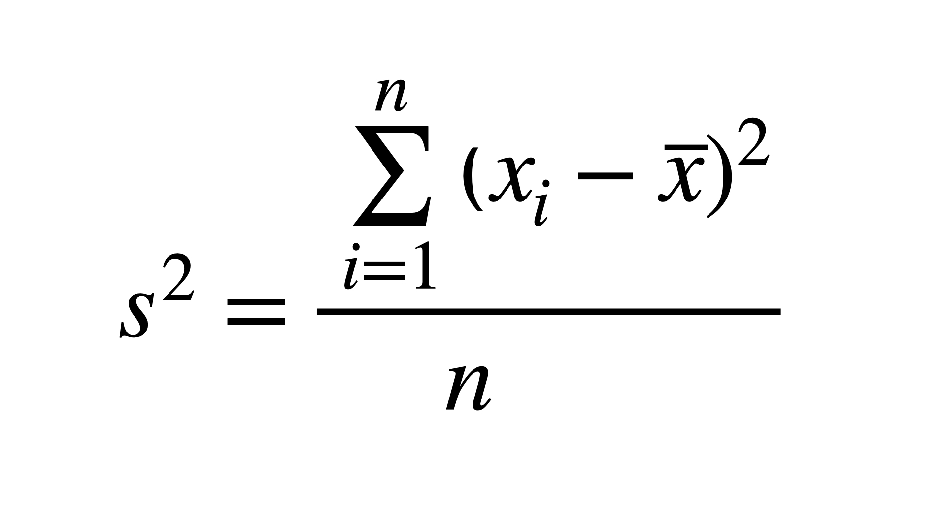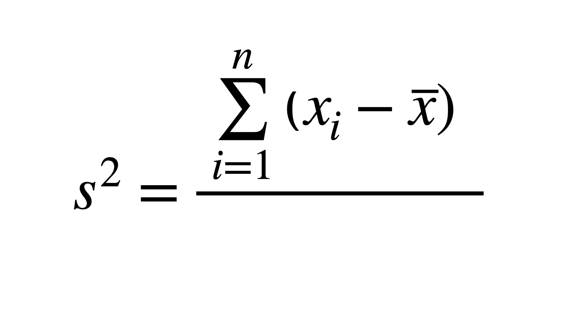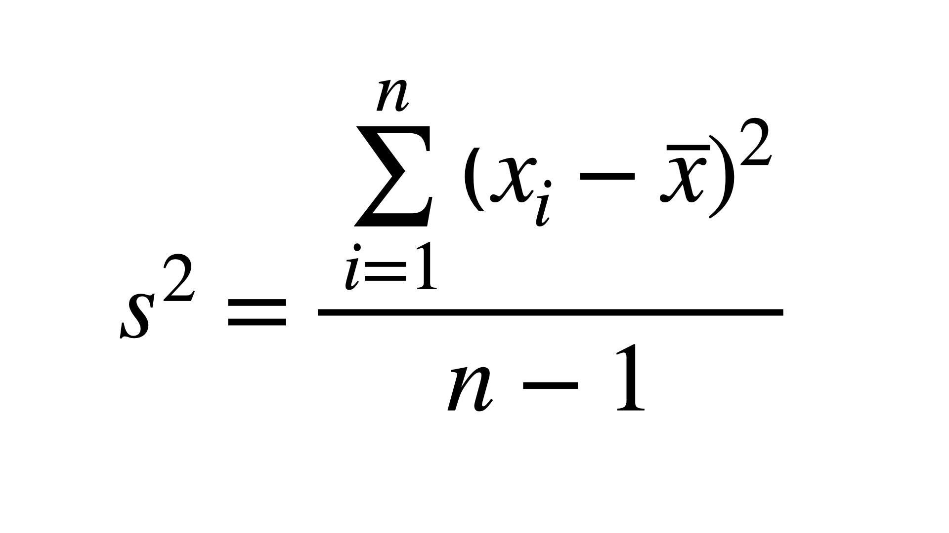 \[s = \sqrt{s^2} = \sqrt{\frac{\sum \limits_{i=1}^n(x_i-\overline{x})^2}{n-1}}\]
