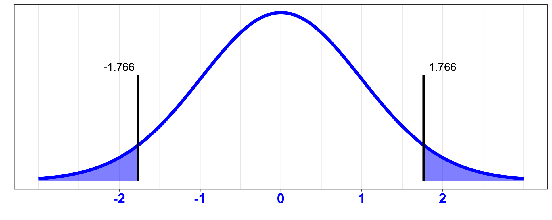 2*(1-pt(abs(1.766), 75.897)) = 0.0814