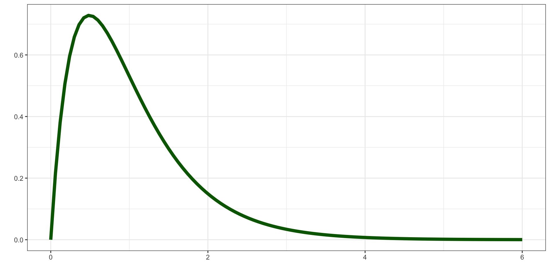 The \(F\) distribution is right skewed whose support is \((0, \infty)\)