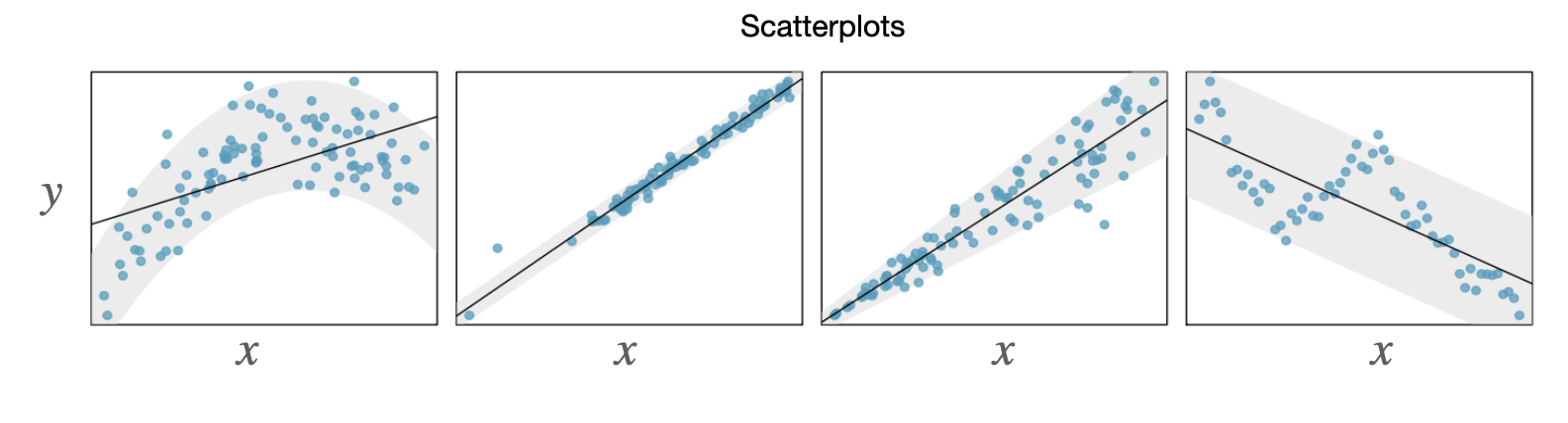 For each of the scatterplots below, estimate the correlation coefficient for the relationship between the explanatory and response variables.